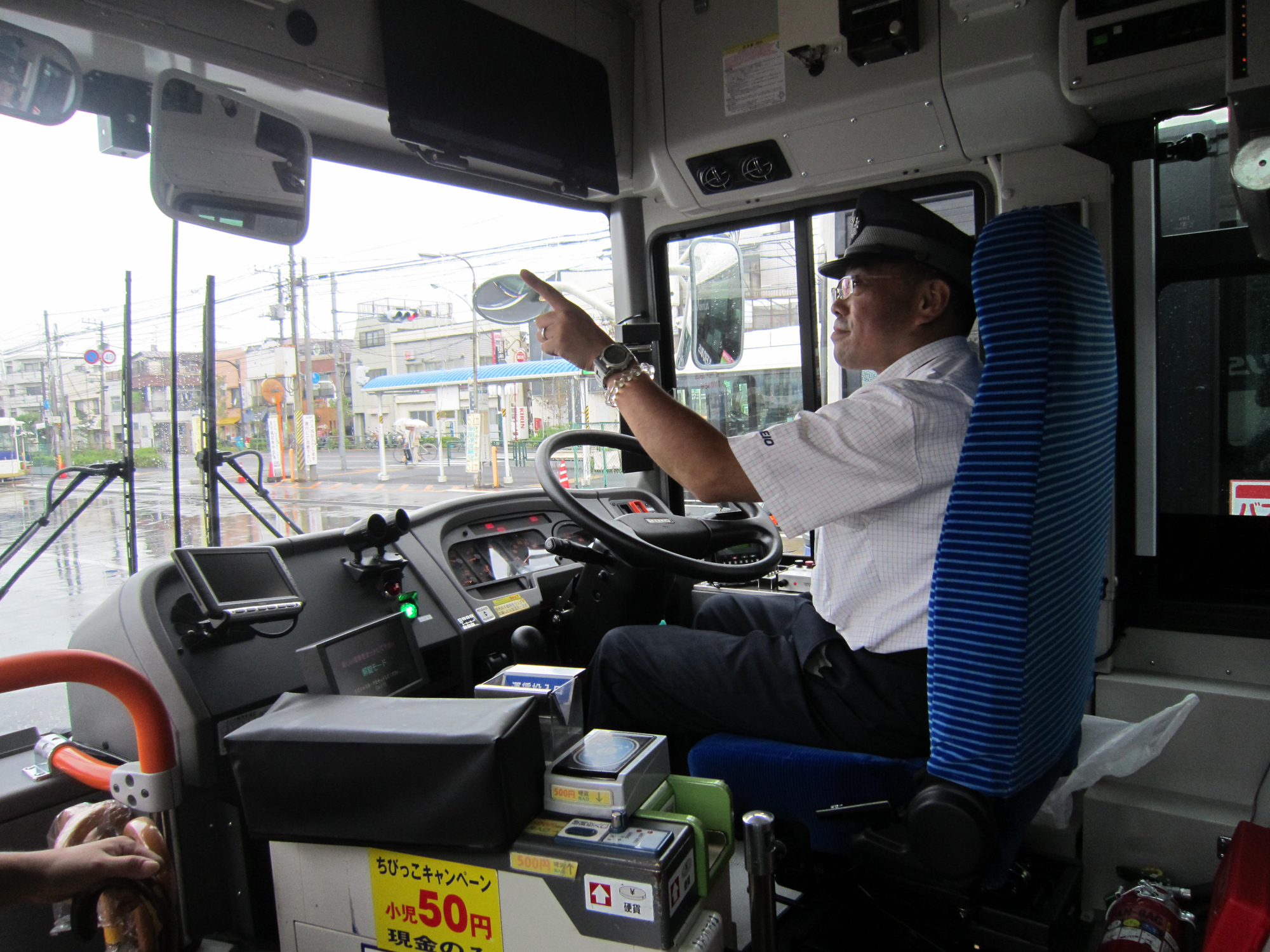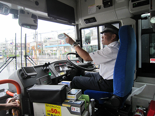 - 私の写真は、お父さんが、安全かくにんのため、指さしかくにんをしている所です。お父さんは、いつもがんばってくれているので、バスの運てんをしているお父さんは、かっこいいと思ったので写真をとりました。いつも東京で運てんしているので、のれないのですが、やっぱり仕事している時のお父さんも大好きです。