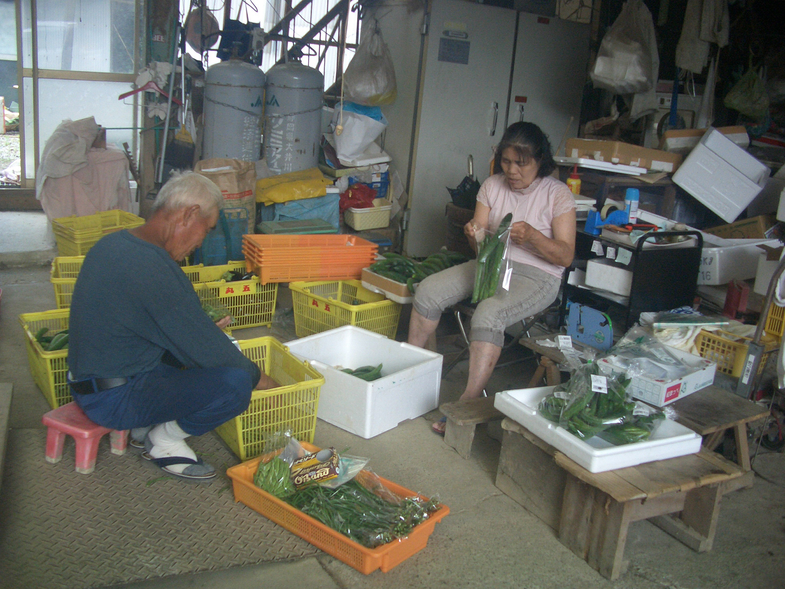 - 私がこの写真をとった理由は、おじいちゃんとおばあちゃんが野菜を作るだけでなく、きれいにふくろに入れてお店で売るところまでを自分たちでやっていることがすごいと思ったからです。品しつを細かく見たり、うまくふくろに入れるために大きさや向きをそろえたりと、いろいろと考えながらていねいに仕事しているところがすてきだと思いました。