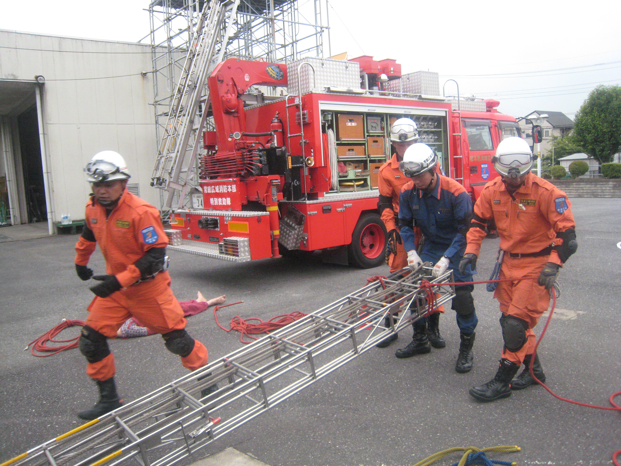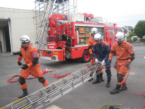 - 3月に大じしんがあったとき、しょうぼうしさんがけがやびょうきの人をたすけていたので、いつもどんなくんれんをしているのかしりたくて、お父さんのはたらいているしょうぼうしょでしゃしんをとらせてもらいました。いつじしんやかじがあってもたすけられるように、くんれんはまいにちしているときいて、たいへんなおしごとだと思いました。