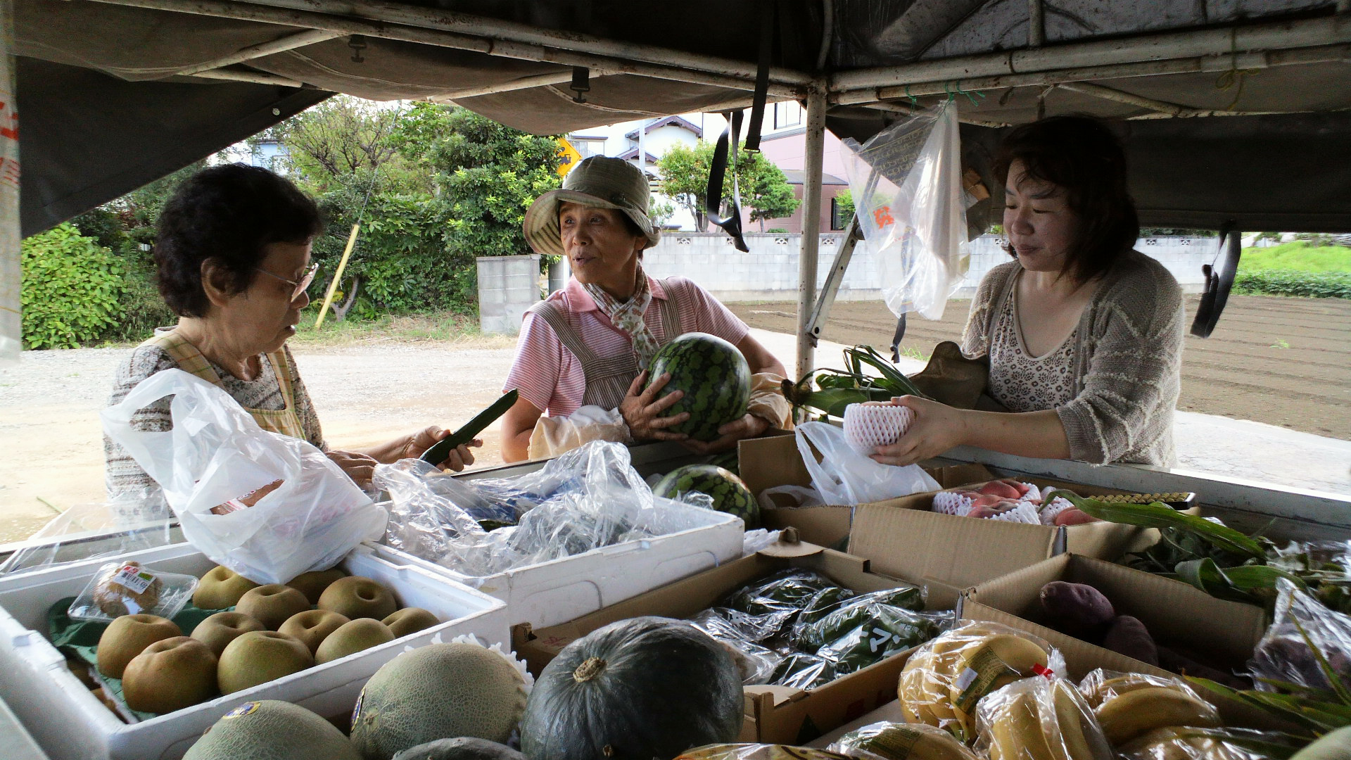 - ぼくの帰りを、いつも笑顔で迎えてくれる行商のおばさん。「好きなコトに一生けん命打ち込んでいたら、いまの仕事につながったのさ」とうれしそうに話す。みずみずしい桃の香りに包まれながら、近所の人たちの会話も弾む。単に物を売るだけじゃない。数少ない地域のいこいの場となっているこの雰囲気が、ぼくは大好きだ。