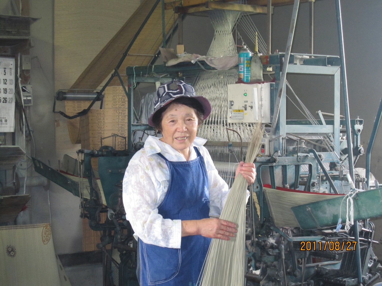 - 69歳のぼくの祖母は、結婚してから47年間ずっとござを作っています。冬は広くて寒い小屋の中で、夏は冷房のない暑い中、朝早くから夜遅くまで、ござを作っています。毎日、一人で頑張っている祖母を見て、ぼくは、すごいと思います。これからも、きれいで、良い香りのするござを、いつまでも元気に作り続けてほしいです。