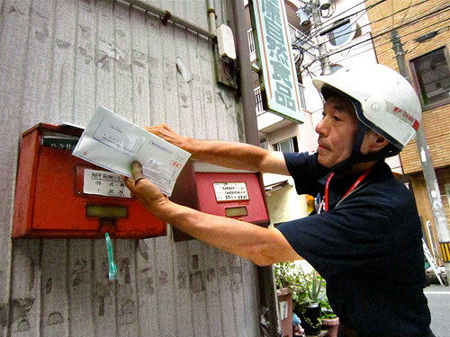 私が、なぜ郵便屋さんを撮影しようと思い立ったかというと、たくさんの人にこの姿を見てほしいと思ったからです。夏の暑さにも負けず、颯爽と郵便物を配達しているおじさんの姿が、とても生き生きと輝いていたのが印象的だったので、それが伝われば嬉しいです。