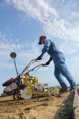 - 八月の晴れた休日、にんじんの種まきをしている父を撮りました。