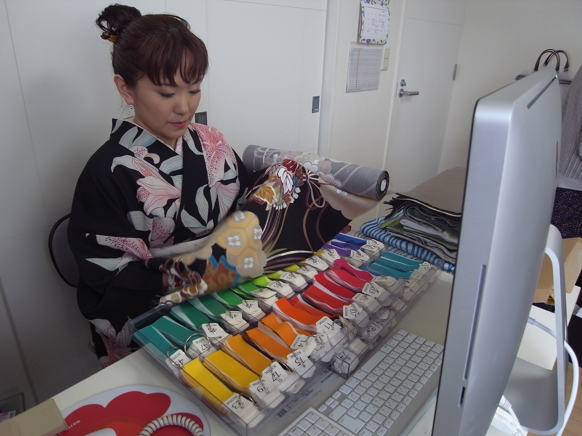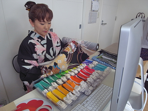 - 私の母は着物や帯をデザインする仕事をしています。着物や帯は日本の古典的なものですが、母の仕事場には大きなパソコンがあったり、とても近代的でおどろきました。何百年も続く伝統の仕事であり、着物の柄を描くというとても特殊な仕事をしている母を私は尊敬しています。