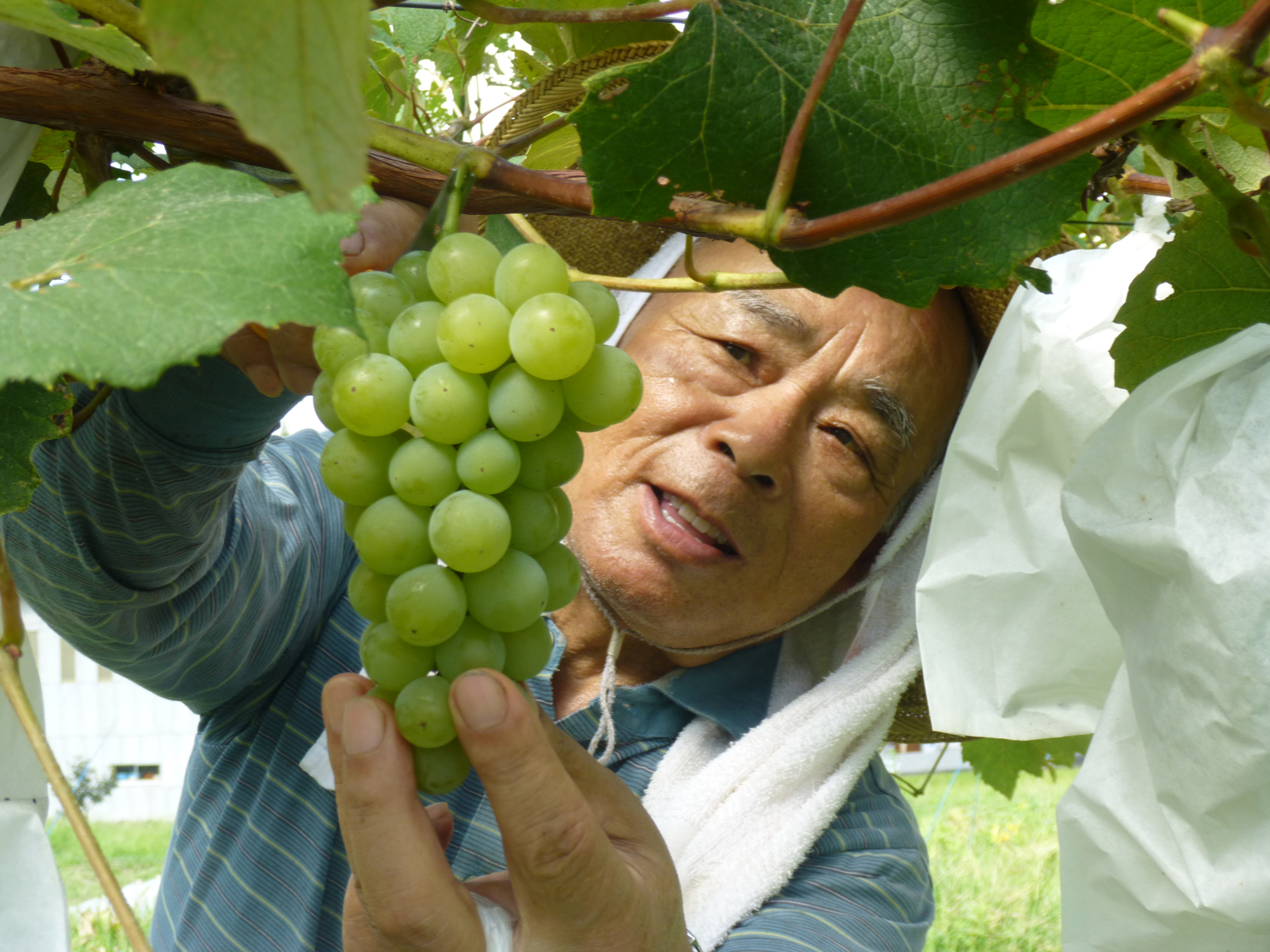 一つ目は、おじいちゃんはいつも朝から、夜まで、野菜やくだものを育てているので、ていれをしています。そのおじいちゃんの元気をみせると言う意味で、送りました。二つ目は、私は、おじいちゃんとおばあちゃんが作った野菜で育ってきました。スーパーで売ってあるのとは、ぜんぜんちがうとってもおいしい味でした。今まで、ピーマン、なす、たまねぎなどの野菜とすいかやいちごのくだものを作っていました。なので、「マスカットも植えてみよう!」と、言うことになり植えました。食べるとすごくおいしかったのでそのおいしさもおじいちゃんのがんばるすがたを見て送りました。