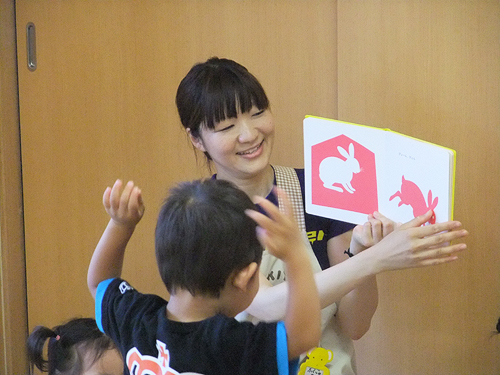 - 保育園の先生は、ちいさな子供をどういうふうに接しているのか知りたく、お母さんの働いている保育園の先生にお願いしました。先生が子供達にほんなどを読んでいて、その中の1さつが切り絵を絵本にした感じだったから、手作りのようで先生達がが作っているのかなと思いました。
