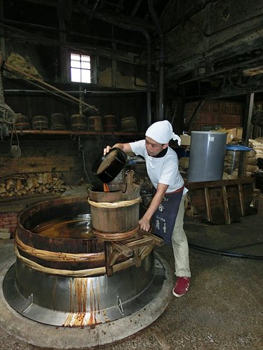 - 私の祖父の家の近くに、しょう油のふるさと、と言われている所があります。ふつうは、工場で作られているしょう油を思い出しますが、この角長さんは、今でもしょう油作りを昔ながらの手作業で作っています。かまくら時代の僧・覚心さんの径山寺味噌がきっかけだそうです。私は、この伝とうを、百年後二百年後もつづけてほしいというねがいで写しました。