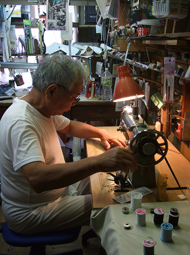- いつもは見たことのない祖父の仕事をしている姿を見てみたかったので写真を撮りました。祖父は、五十年以上も紳士服を作り続けているので、仕事場に入るといつもよりもしんけんな表情でミシンにむかい仕事に取り組んでいました。その姿は、お客さんのためにしんけんにやっていることがとてもよくわかりました。