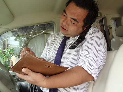 - これは、お父さんがしごとをしているところです。お父さんはえいぎょうのおしごとをしています。ぼくはおとうさんがしごとをしているところをはじめて見ました。いつもあせをかいていっしょうけんめいはたらいているお父さんを見て、わぁ、すごいな。ぼくたちのためにがんばっているんだな。と思いとてもうれしかったです。