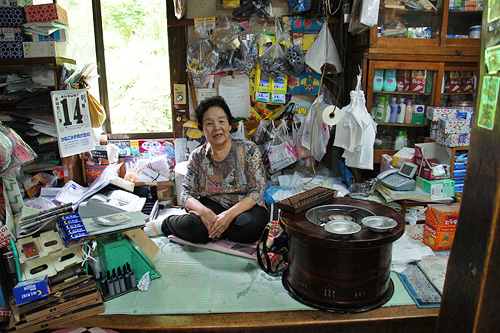 - 父の故郷に帰省する途中に立ち寄った山間の万屋。たくさんの品物の中に笑顔で座ってる店主のおばあさんが印象的で、思わずシャッターを切りました。おばあさんは足が悪いらしいのですが、辛い表情も見せず、ニッコリと微笑んでお客さんとお話をする姿は素敵でした。おばあさんの優しい表情を捉えることができたのでよかったです。