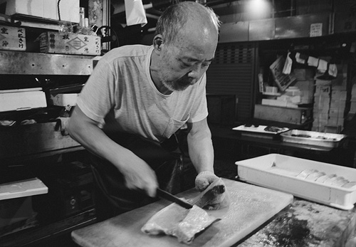 - この写真は大阪市にある鶴橋商店街で撮影しました。大量の魚を素早く捌くおじさんの姿が格好よかったので撮らせてもらいました。撮影しながら話をしていると、なんとこの場所で50年間も魚を捌きつづけているとのこと。「毎日いろんな人が来てくれて楽しいよ」と笑顔で話してくれました。そのときの顔はいまでも忘れられません。