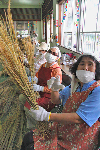 - 古くからの友人と世間話を交えながら藁をまとめる仕事をしているのを見ていたら、綱引きの伝統が始まった300年以上前もこうゆう風に皆で働いてきたのかもな、と感じました。この暖かい人柄あって、300年以上も伝統が続いて来たのだろうと感じました。なんとなく参加してきた綱引き行事が行われるまでの過程を知り、この伝統を受け継いでいきたいと思いました。